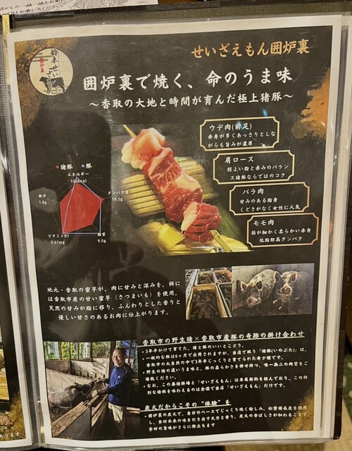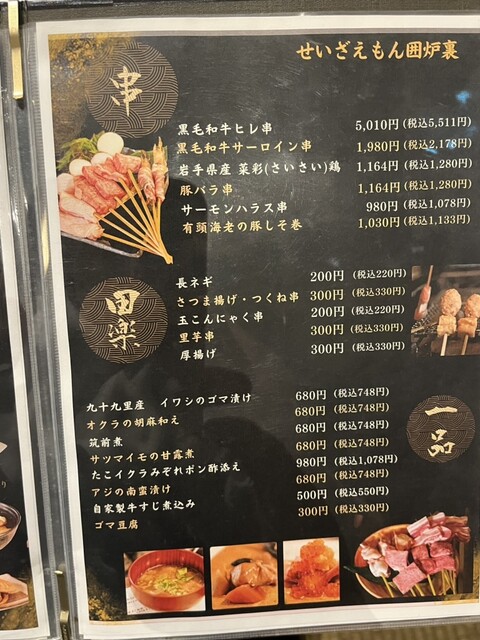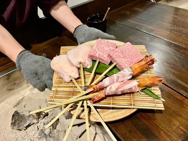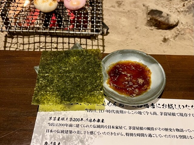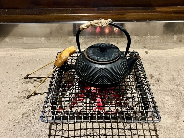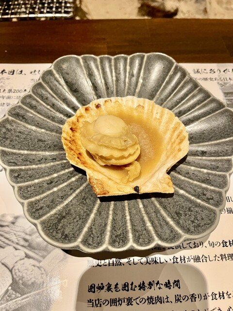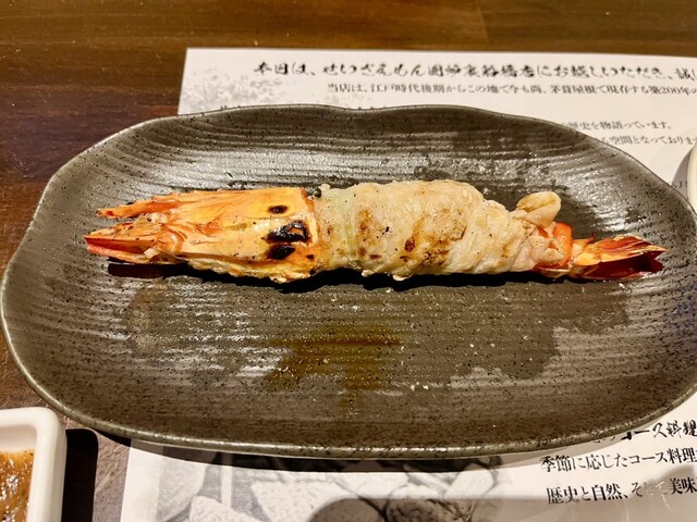 土曜日の夜に船橋市丸山の【鈴木せいざえもん 囲炉裏 船橋店】へ、夫婦でディナー訪問^_^古民家の囲炉裏を前にして、落ち着いた空間と焼物料理が楽しめる( ^ω^ )事前に「竹コース」を予約していたので、席に案内されると早々に前菜が置かれ、見た目と美味しさでテンションが上がるo(^▽^)o前菜と椀盛の提供後には、炭が用意され、海の幸、山の幸と焼物の順で、ほぼスタッフにより焼いてもらえるのがありがたい(o^^o)また、各食材の食べごろをベストタイミングで提供してくるため、最後まで美味しく、お腹一杯になりながらも、ディナーを楽しむ事が出来た(^o^)自宅から遠いので、頻繁には来れないが、また来たくなるお店(^_^)