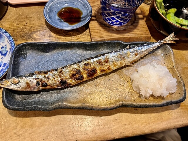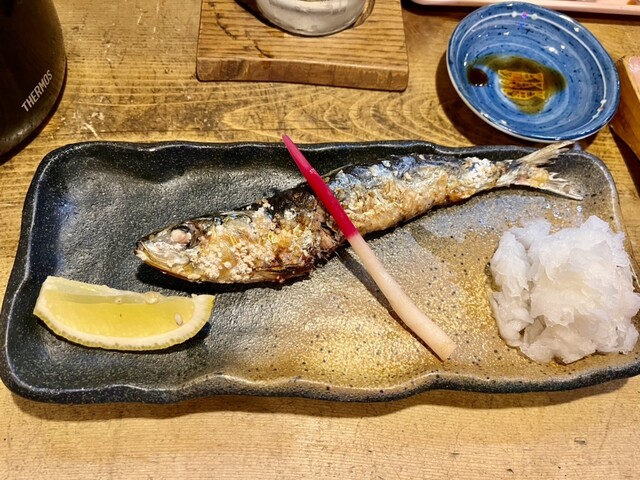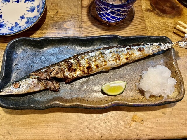旬の秋刀魚を食べに、千葉市中央区都町の【酒肴 ちが崎】へ^_^焼き上がる間に、好きなネタを「お刺身」で一杯‼︎炭火で焼いた大ぶりの「秋刀魚の塩焼き」は、香ばしく程よく脂も乗って、夢中に頬張ってあっという間に食べ切ってしまうほど美味しい( ^ω^ )夫婦で1尾づつ食べたけど、次回は2尾一人で食べきれそうだ(^-^)隠れた逸品の行者ニンニクが香るニラが乗った、「冷奴」で締めて、お腹も良い感じ(^O^)