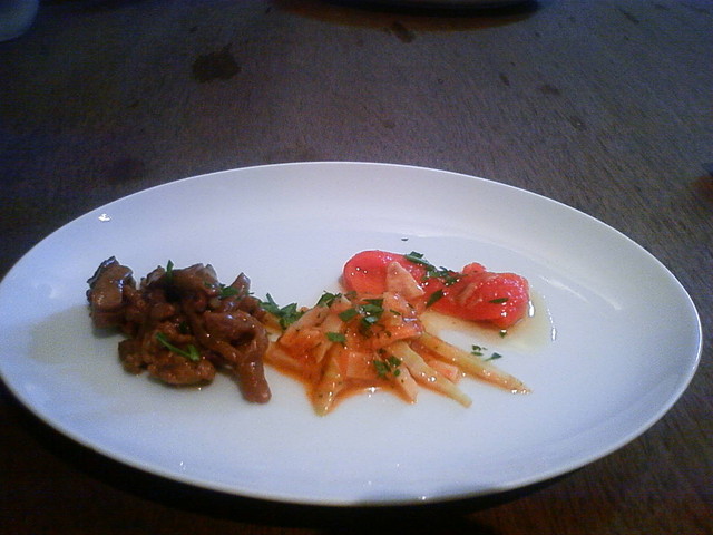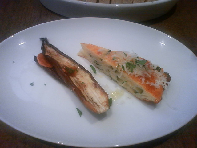 この日のランチは前菜はトリッパとカポナータの2点。これに自家製パンがつき