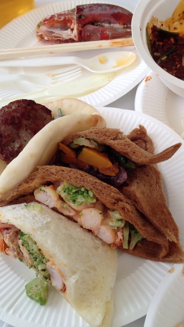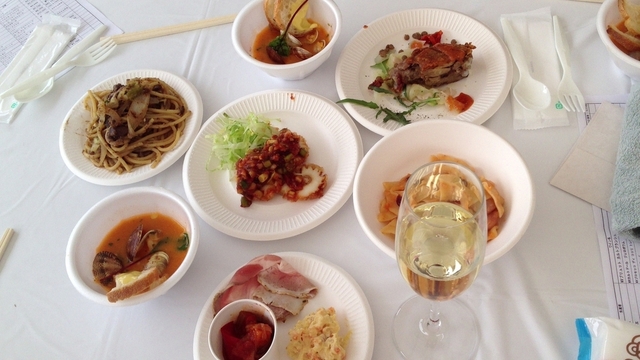 各お店の屋台に、各々が取りに行く屋台スタイルなので、ヒールより、フラットシューズが良い。