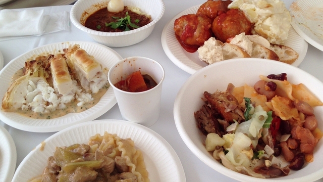 (いろいろなお料理があるので、いろいろなものを食べたい場合は、一皿を少なめに入れてもらい、