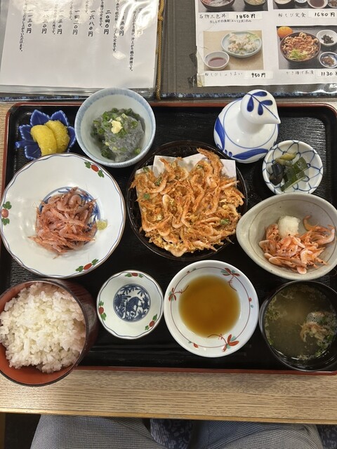 桜エビたくさん食べれて満足満足!桜エビの甘味がたまらない。今年はたくさん採れているそうで、よかったです。かき揚げ丼のいい香りもしたので、今度は是非食べたいです。おばあちゃんが今日は1人で頑張っていました。