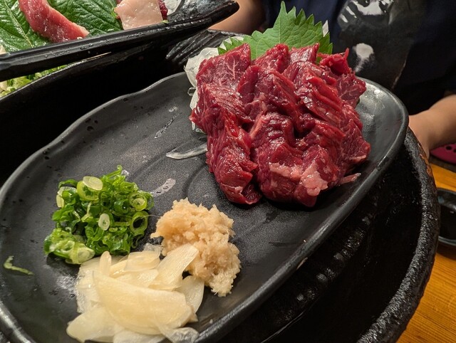 念願の訪問♪馬刺しは美味いことはとこは予想してました(笑)馬の焼き肉がめちゃくちゃ美味い!部位によって、全然、食感も味も違うし、黒酢のたれが、またさっぱりとしてて美味い!