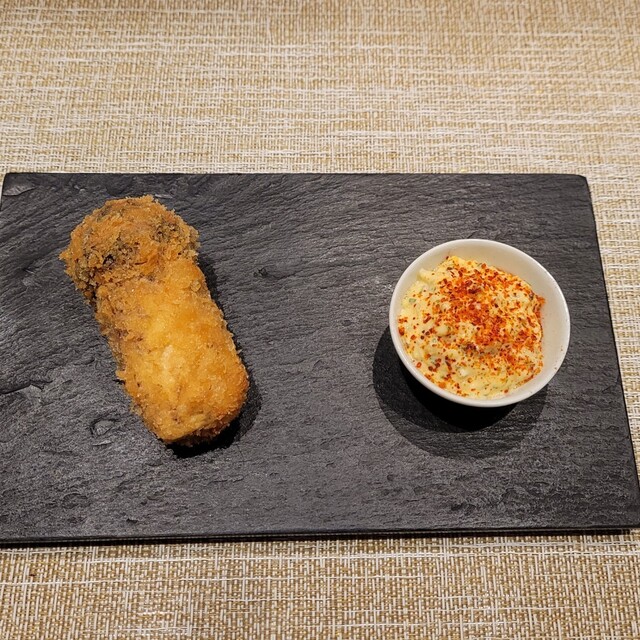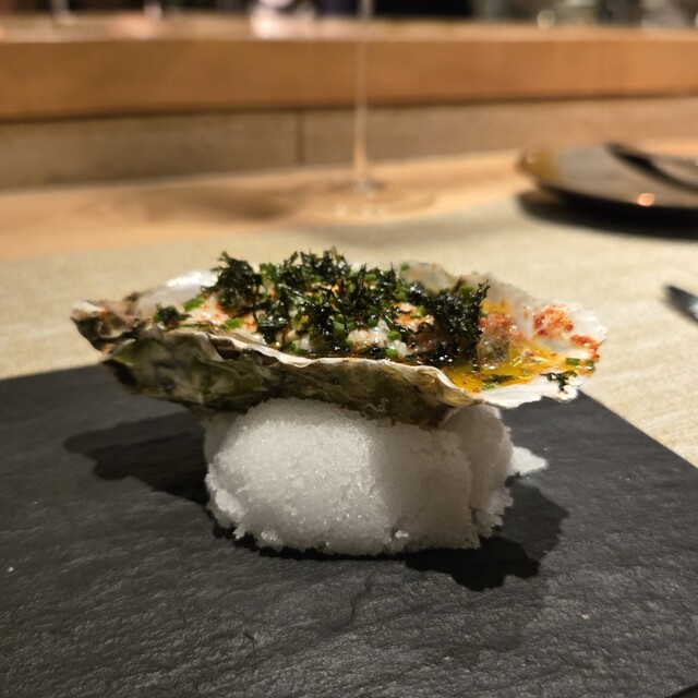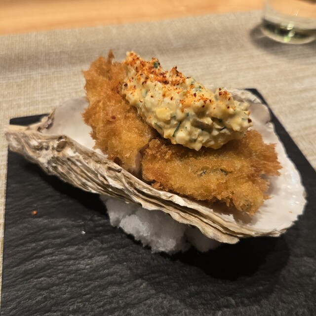 北海道産の牡蠣と佐賀県産の海苔を合わせた1品。