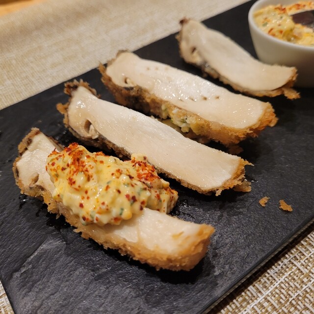 続いてはこんがりきつね色に揚げられた松茸の登場。