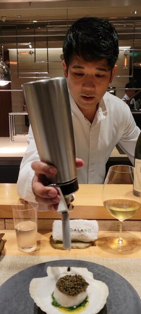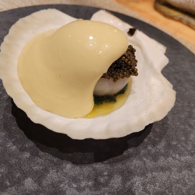 帆立の出汁とレモンオランデーズの酸味とコクをお供に、プリップリの帆立の身の甘さ、キャビアの塩味との織り成す味わいに口福にみたされるのでしたヾ(´▽`*)ゝ
