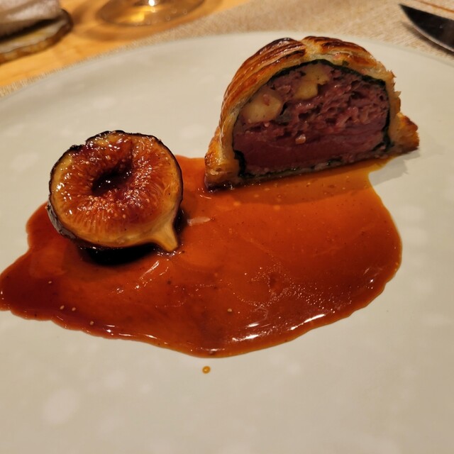 30分焼いては30分休ませる工程を繰り返されたという、サクサクのパイ生地に包まれたフィレ肉は美しく、そしてやわらかくジューシー、茸のデュクセル、赤ワインのソースとともにあまりの美味しさに悶絶してしまいました(。◕ˇдˇ◕。)/