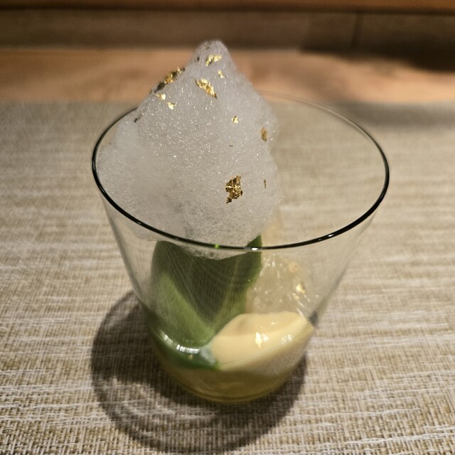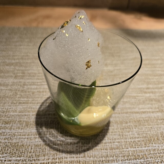 水晶文旦とミントのアイス、桂花陳酒のゼリー、文旦とレモンの泡とさっぱりと美味しく楽しませていただきました(・∀・)イイネ!!