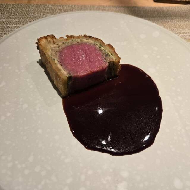 メインはイギリスの伝統料理ビーフ・ウェリントンのSUGALABOバージョンとして供されましたΣ(゚∀゚ノ)ノキャー
