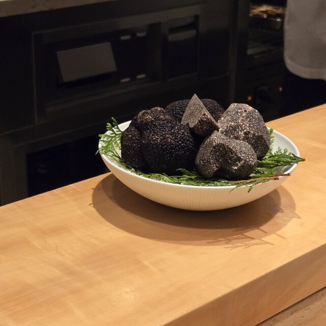 高級魚クエに、たっぷりと黒トリュフを削りかけて仕上げられた1皿。