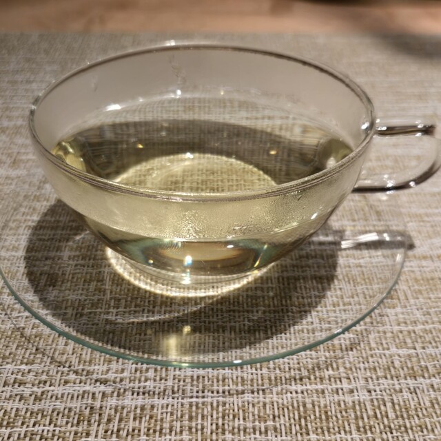 ミント、レモングラス、広島県のレモンなどのフレッシュハーブティー、満腹のお腹にやさしくしみました(´▽`) ホッ