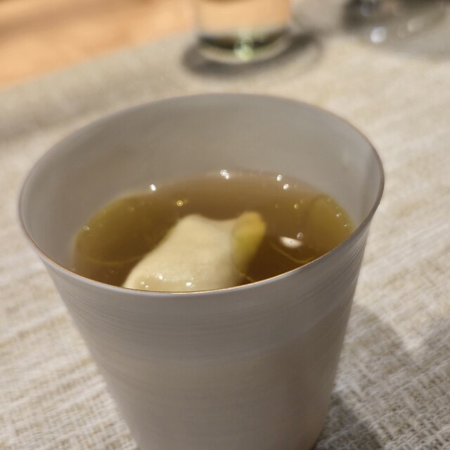 ラビオリ入りのコンソメスープが供されました。