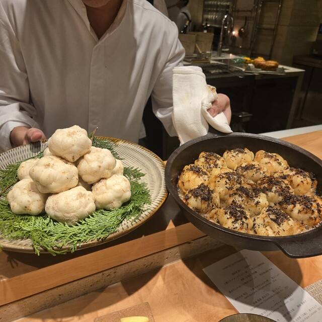帆立を並べた1皿は、須賀さんがたっぷりと黒トリュフを削って仕上げられましたΣ(゚∀゚ノ)ノキャー