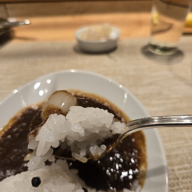 そのプリップリの身から溢れる甘みと旨味に悶絶するところへ、オマールの出汁と赤ワインのソースのコクが相性抜群、ホクホクの里芋も美味で堪能させていただきました(๑˃̵ᴗ˂̵)