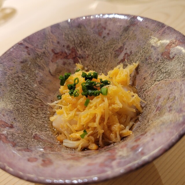 おぼろを合わせた小鰭、酸味と甘みのバランスを楽しませていただきました(。・_・。)ノ