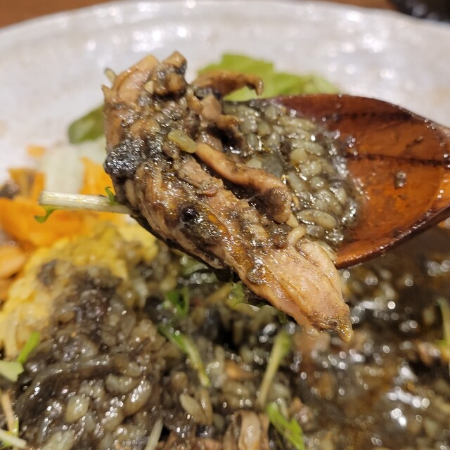 #魯珈#ろか#限定カレー#塩麹せせりとイカ墨カレー』とのこと。