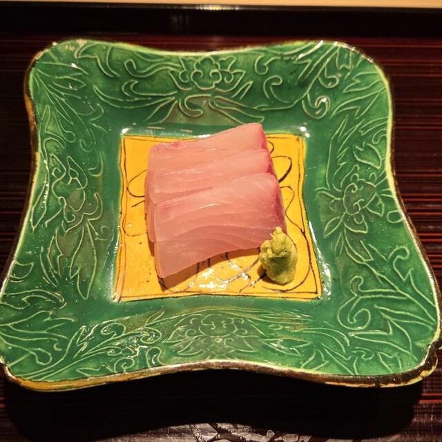 横須賀の長井漁港・長谷川大樹さんの神経〆のヒラマサは、山葵醤油と合わせて、心地のよい歯切れと広がる旨味に口福を味わいましたヾ(゚▽゚*)
