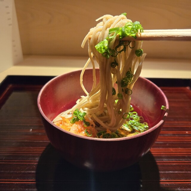 味噌と味醂に2年漬けてあるという自家製の唐墨、その風味を余すところなく蕎麦に絡めて、日本酒を追加したくなるような美味しさを堪能させていただきました°˖✧◝(⁰▿⁰)◜✧˖°