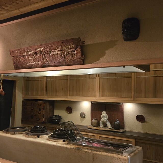 月岡 正範大将と女将さんに迎え入れていただき、立派な竈、京都風に言えばおくどさんがデーンと構え、背後の美術品がステキで、初めて目にします畳敷きのカウンターの1席へ案内いただきましたΣ(・ω・ノ)ノ!