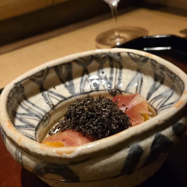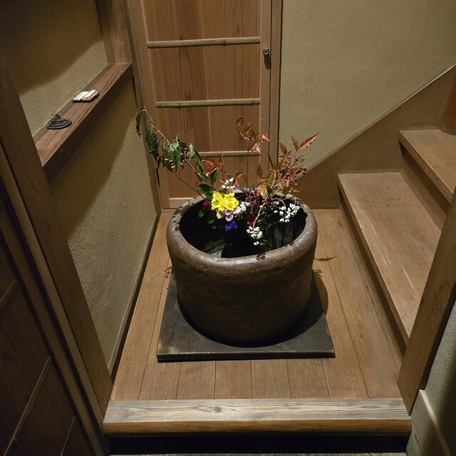 2021年4月、喧騒から離れた閑静なエリアに位置する寺院・青蓮院門跡の向かいにオープン。「食べる美術館」を謳い、自然の恵みを詰め込んだ日本料理と、ロマンあふれる古美術を融合させた独自の空間を提供している。「自然豊かな土地で、食材と向き合う料理を作りたい」と、主な食材は店主自ら大原や美山へ出向いて調達。野山に自生する山菜や草花も積極的に取り入れ、うつろう日本の四季を皿の上で見事に表現する。』とのこと。