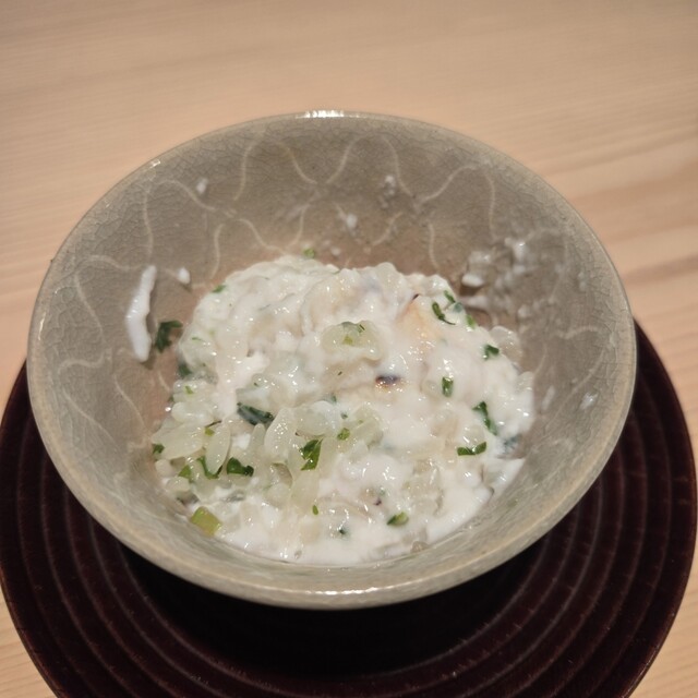 私は未訪問のまま閉店されてしまいました『京味』の故・西健一郎氏の薫陶をうけた店主による、白味噌のお椀でスタート。