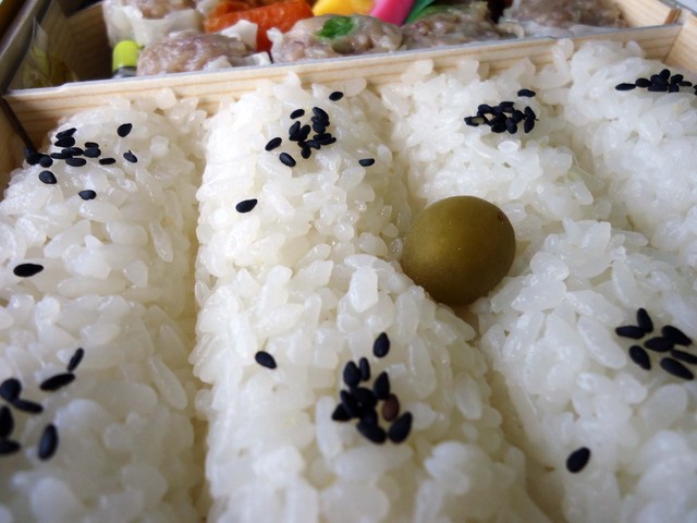 白俵型ご飯(小梅、黒胡麻) 昔からかわらない、お馴染みの俵型です。人気の小梅もごいっしょに。