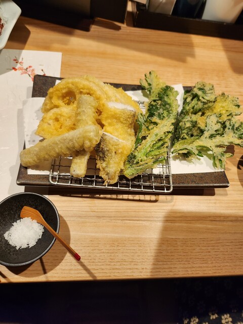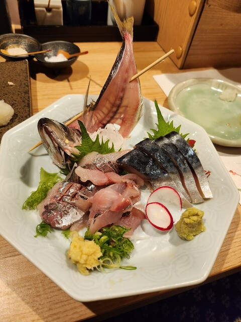 とおっしゃる連れ合いに頼まれて、泊まりがけで再訪しました。夕立がすごくて、濡れ鼠状態でつきました。本日は満席ではなかったですが、お子さんを連れたお客さんが二組でした。連れ合いは天ぷら、お寿司をお好みで食べて満足していました。確かに美味しかったです。サバ好きの私しは、シメサバの刺身と握りがとても、とても美味しかったので、本日も夕食はこちらにすることにしました。