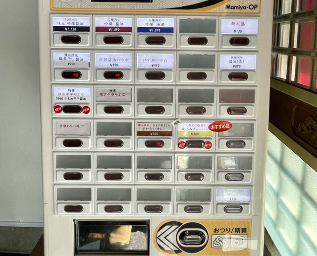 券売機にてリニューアルした塩ラーメンを食べてみたかったので、上中華 海塩990円 まかないミニカレー290円 物販合鴨ロースト1360円の食券を購入しました