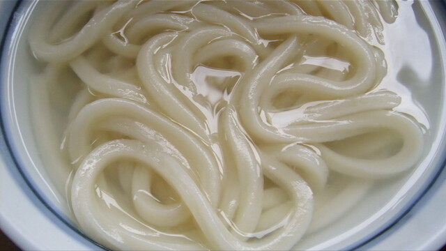 表面ゎツヤツヤしたきれぃな感じでみずみずしく、少しウェーブがかったうどん麺ですょ