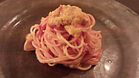 とっても深みのあるトマトソース。ウニの甘みとトマトの酸味が堪能できます。麺も茹で加減絶妙。。。