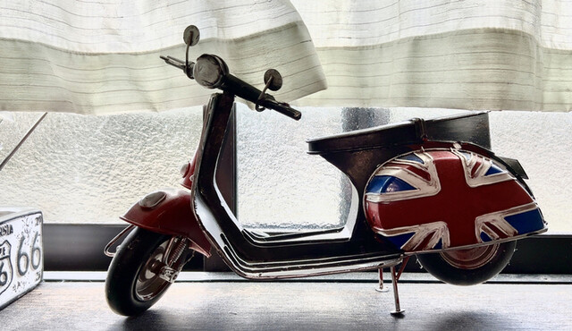 ベスパってイタリアのスクーターですが、イギリス模様にしています