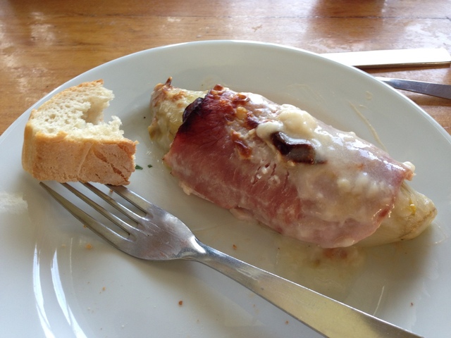 メインのアンディーブ(チコリ?)をハム巻きグラタン!