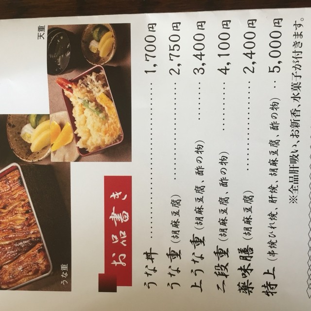 以前はうな重 松・竹とあったものが上うな重・うな重と改名されていました。