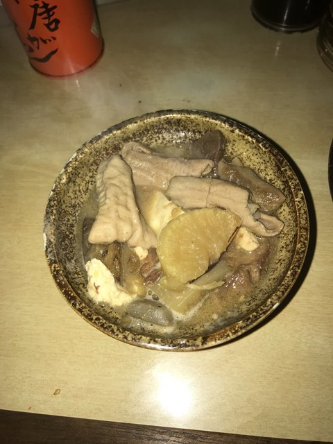 ついに念願の豚足唐揚げ(350円)。これはこれで美味しいが、豚足なので骨だらけで可食部分が少ないにもかかわらず、揚げたことによりさらに食べる部分が無くなった感じ。