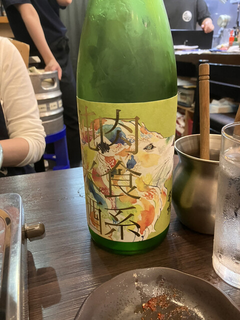 いつもは日本酒を飲むんですが、この日はラベルが可愛い焼酎を飲みました。