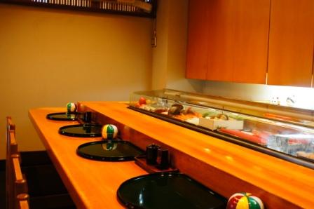 お店前の駐車場に車を停めてお店に、店内はL字型のカウンター席(ネタケース有)と奥に座敷席があるようでした。