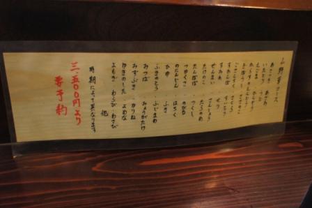 カウンターにあった山菜コースお品書き