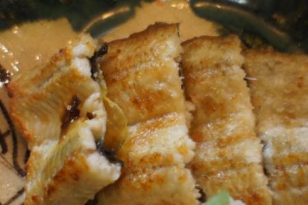 天然鰻は、時期が時期ですから、小さいのしか入りませんでしたと言われていました、此処で使うギリギリの220g位とのことで、少し塩を強めにしていますので、好みで大根おろしで調整して下さいとのことでした、うなぎの良し悪しは捌いて、焼いてみないと分からないと言われていたと思います、此れは何点位ですか?とお聞きすると。。。。確か・・・60点位だと言われていたと思いますが。。。。。焼き方も良いのでしょうね、皮はパリッとして身はふっくら・しっかりしていましたが、これでも美味いと思いましたけど(;^_^A 100点満点のうなぎを食べてみたいですね^^(連れもペロッと食べてました)