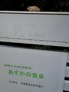しかも、扉の上でアマガエル君がお出迎え(笑)