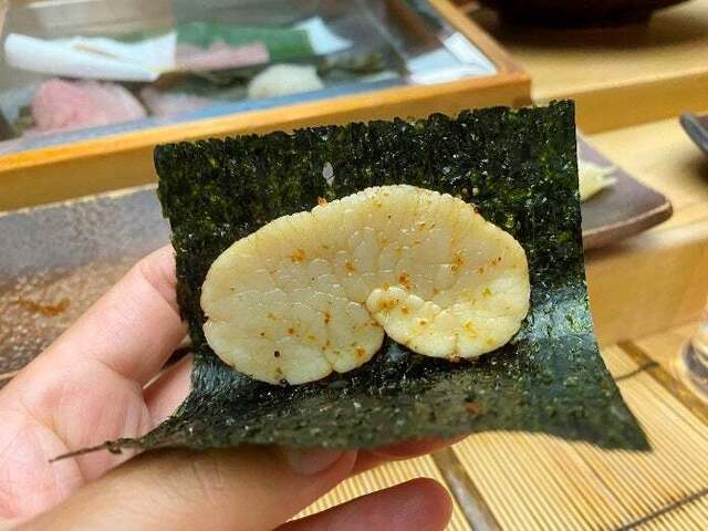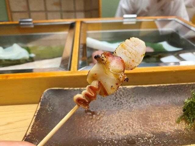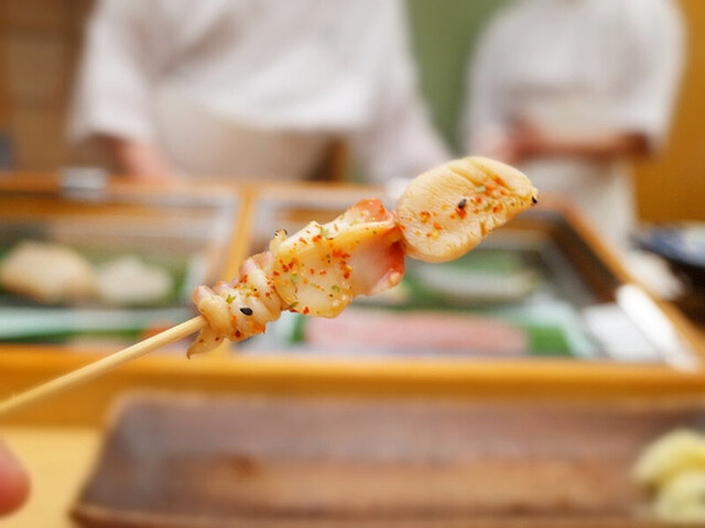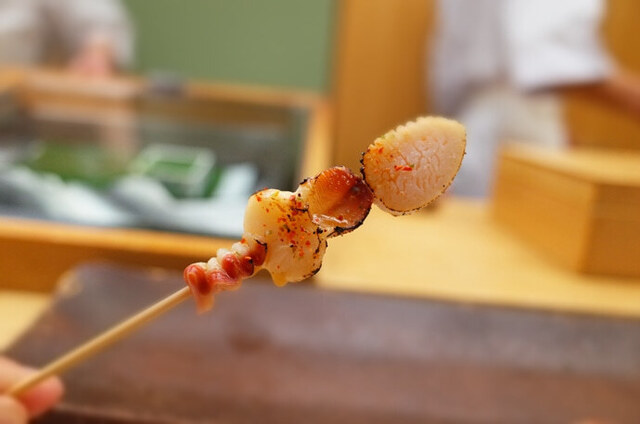 北寄貝のもつ焼き