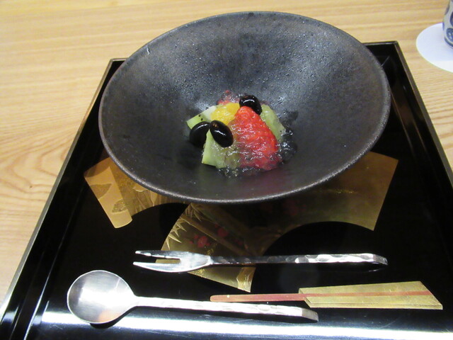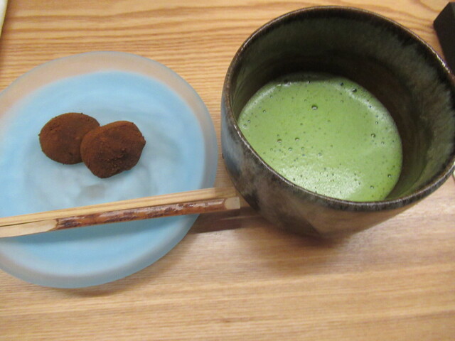 まずは、美味しいお茶とフルーツのオリジナル和菓子からスタート。
