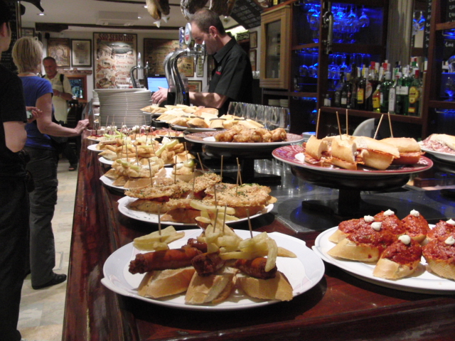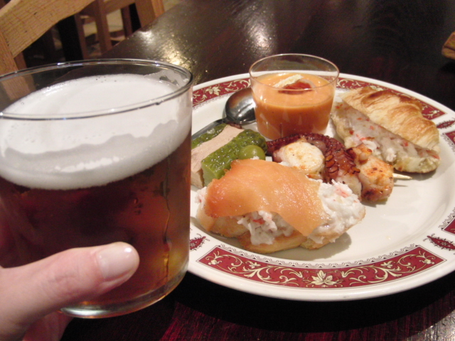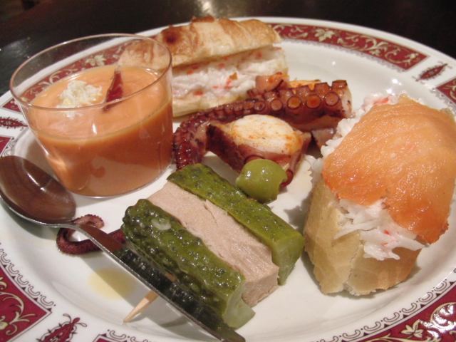 ピンチョス、とっても美味しい。ツナをつかったものや、タコの料理など、