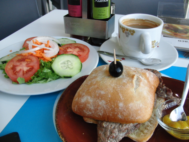 リスボンで食べそこねた、名物ビーフサンドを朝から頬張って元気いっぱいです