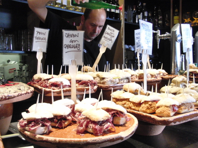 店先に並ぶピンチョスを指さしで、お皿にもってもらい、