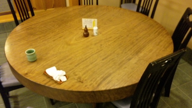また店内の大テーブルは直径180センチ、幅20センチはあろうかと思われる一枚板でご主人に話を伺ったのですが「リビンガン」と呼ばれる南洋の樹木だそうで、今では輸入していないとのこと。
