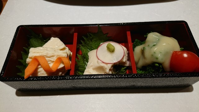 この店は刺身だけの店ではなかった。 「だし巻き玉子」は柔らかく、出汁がジュワッと染み出る逸品 「珍味三点盛」は日本酒が進む。「日本酒の飲み比べセット(3種)」があるので、これも合わせるときりがないが、幸せの境地に入り込む。 「揚げおにぎりの湯葉餡かけ」は、締めでもいいし、つまみとしてもいける。これは、外せない これを食べずして「なごみ」は語れない そんな逸品だった。美味しい出汁には日本酒がすすむ 「自家製ごま豆腐」旨いっ!! また日本酒をおかわりしてしまった... 旨くてなかなか帰れない。ラストまでいてしまった。