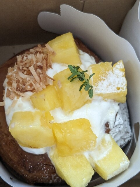 夏らしい玉蜀黍のパンやヨーグルトクリームとパイナップルを組み合わせたパイ生地のもの