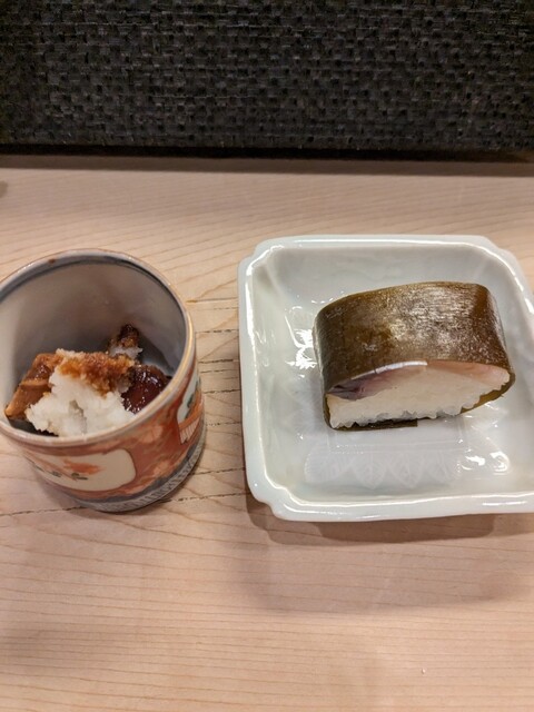 突き出し 鯖寿司とアスパラ