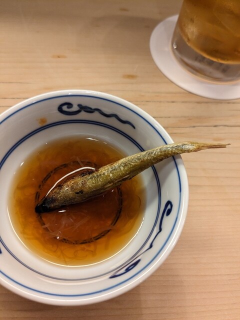 お付きだし キビナゴの天ぷらと鯛寿司