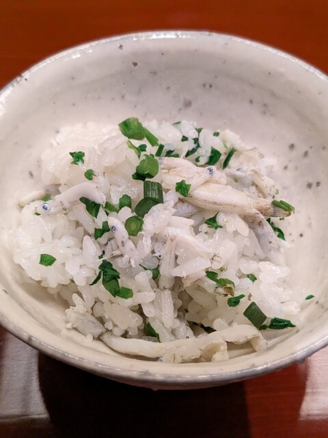 ご飯のお供 漬物と海の稚鮎 山椒が苦手な我が家に配慮してナシで炊いて下さいました^^